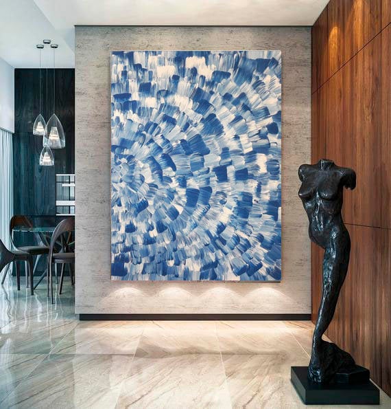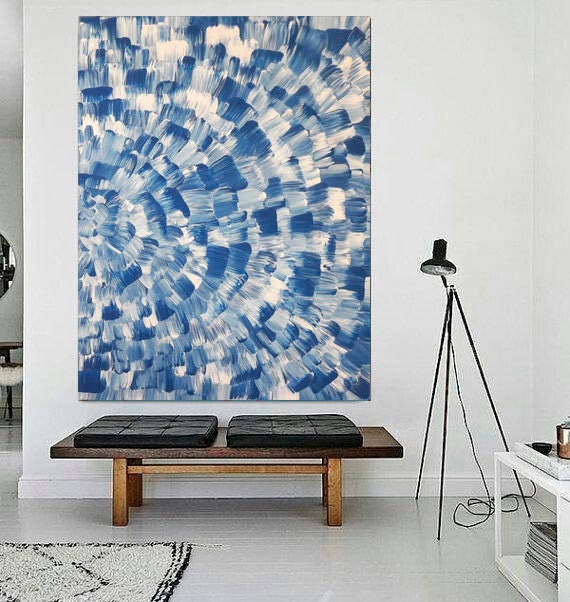 Extra Large Blue White Abstract Original Acrylic Art Canvas Large Blue White Abstract Painting Modern Wall Art Canvas Mosaic Painting Office