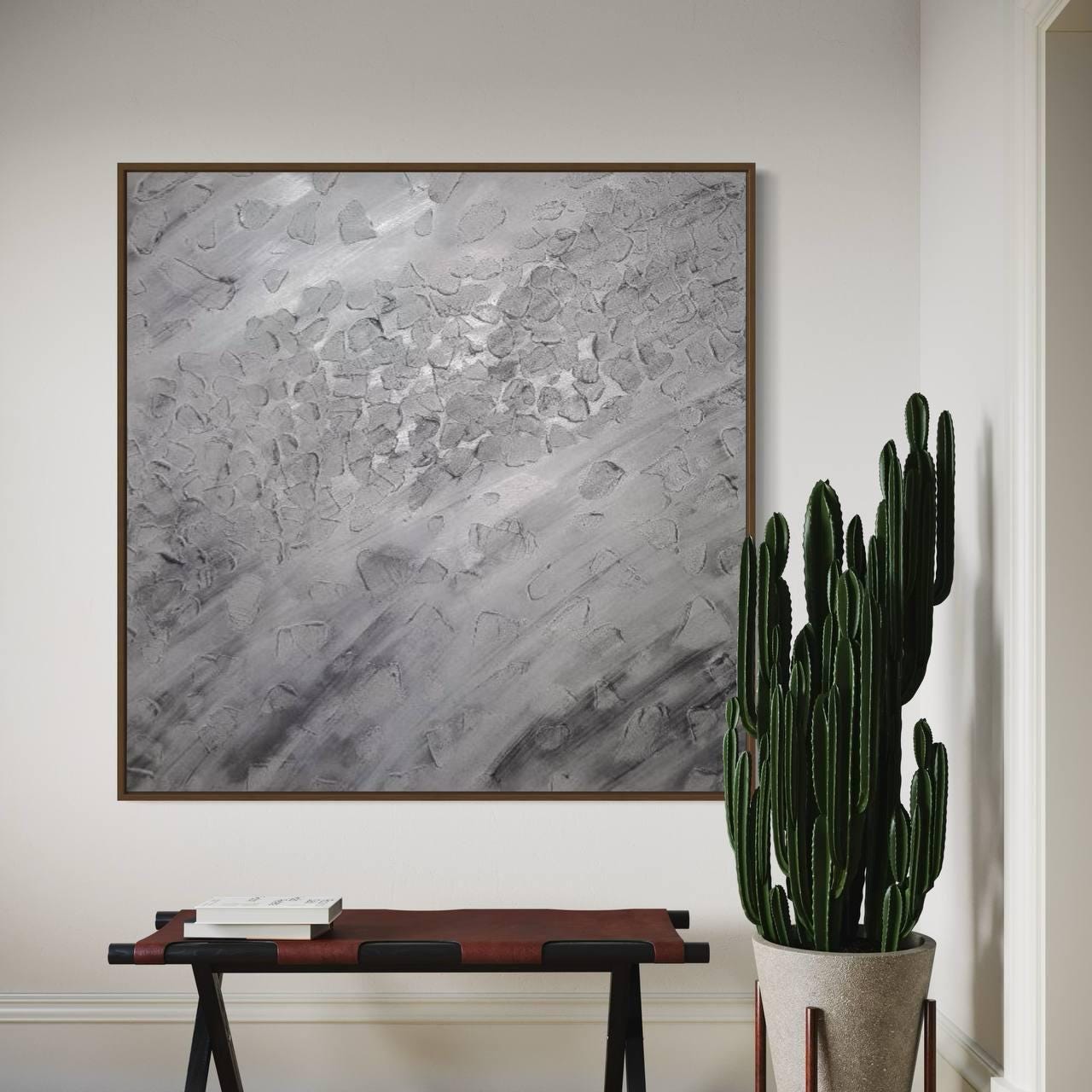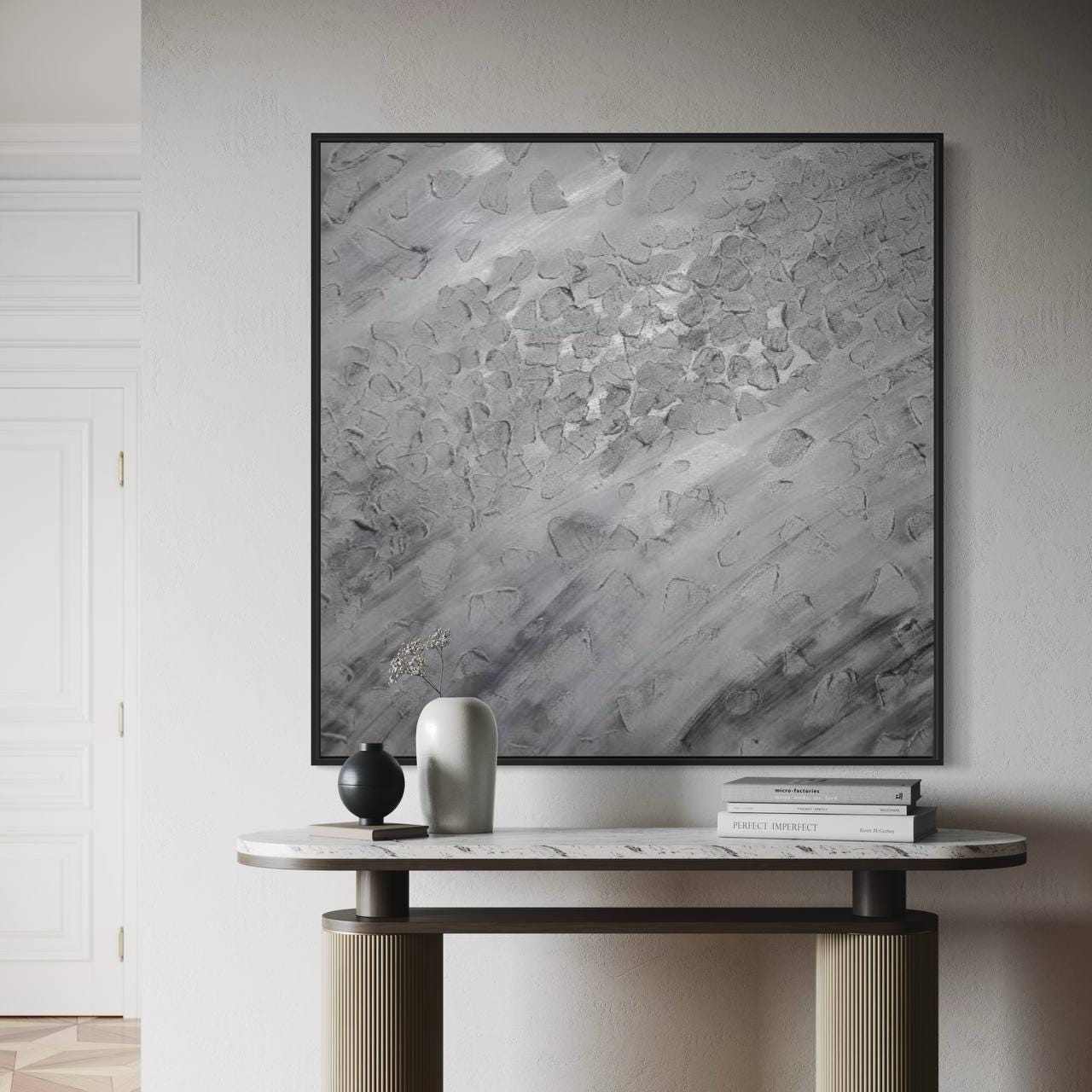 Designed for modern, neutral interiors, this artwork is perfect above a sofa, bed, fireplace, or dining area, adding calm, texture, and architectural elegance to your space.