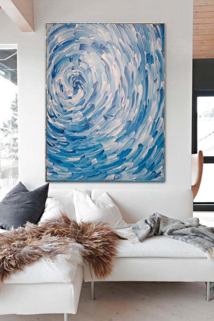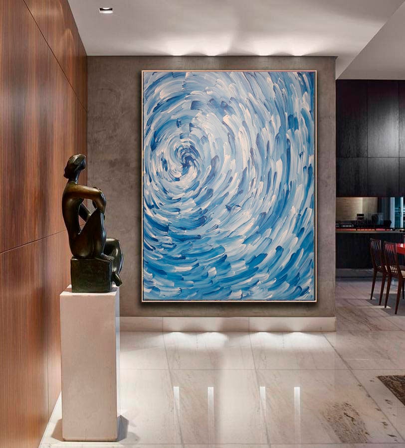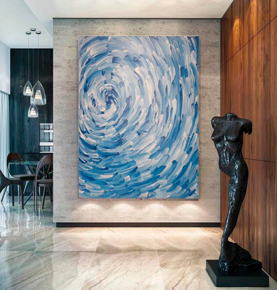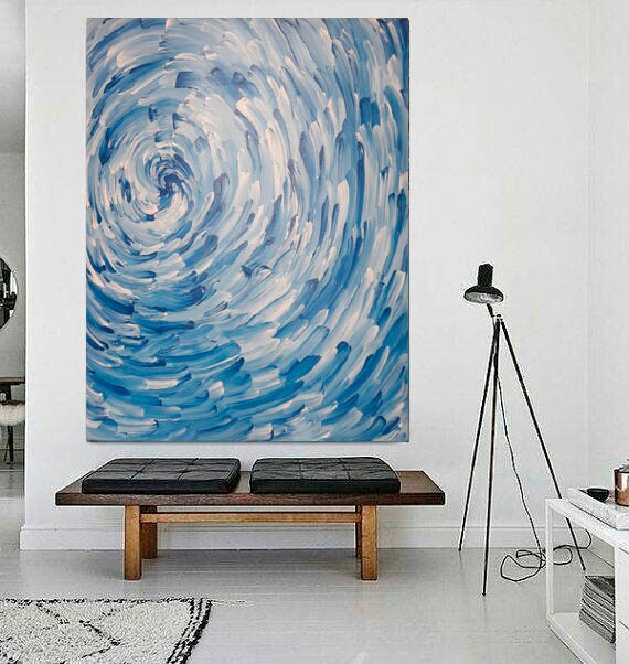 Extra Large Blue White Abstract Original Acrylic Art Canvas Large Blue White Abstract Painting Modern Wall Art Canvas Mosaic Painting Office