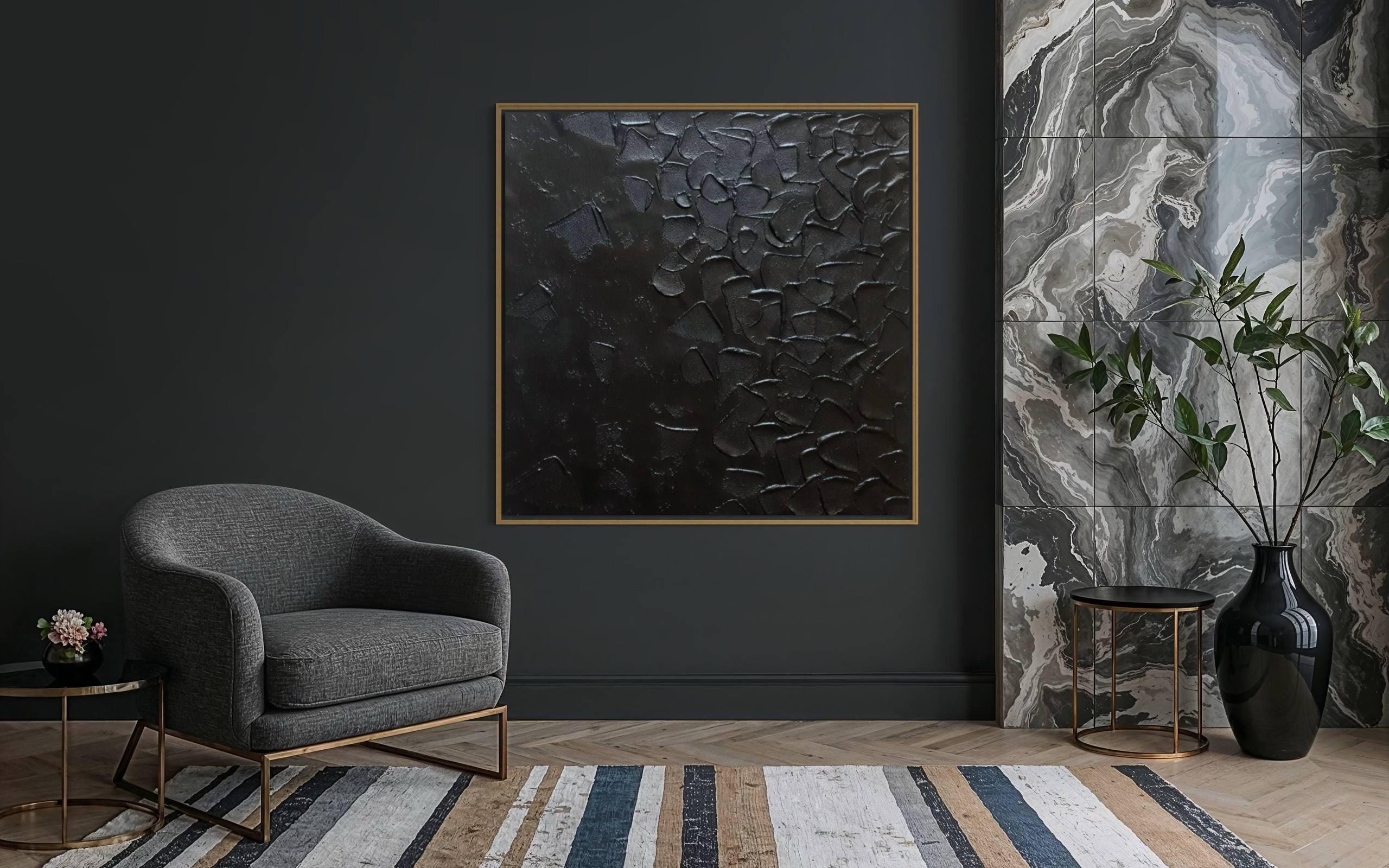 The rich matte black finish adds depth and drama, making this artwork perfect above a sofa, bed, fireplace, or as a focal point in modern and luxury interiors.