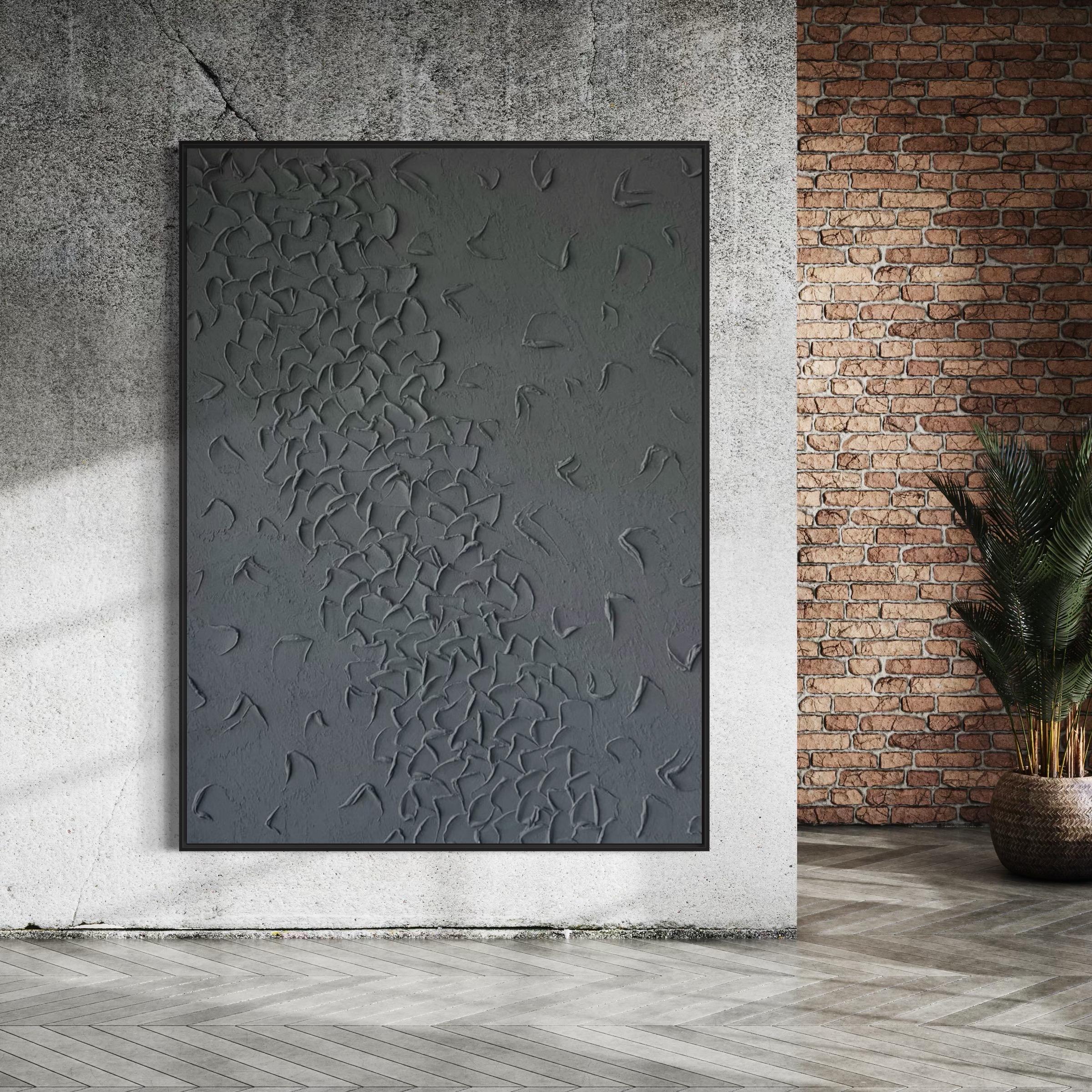 Extra Large Textured Wall Art Gray Abstract 3D Plaster Painting Handmade Canvas