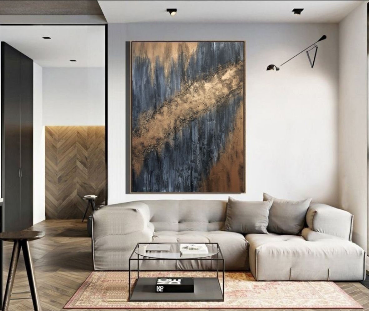 Black & Gold Extra Large Original Rich Texture Art Canvas, Abstract Painting, Modern Art Loft style, Black Gold Wall Art Office Urban Style