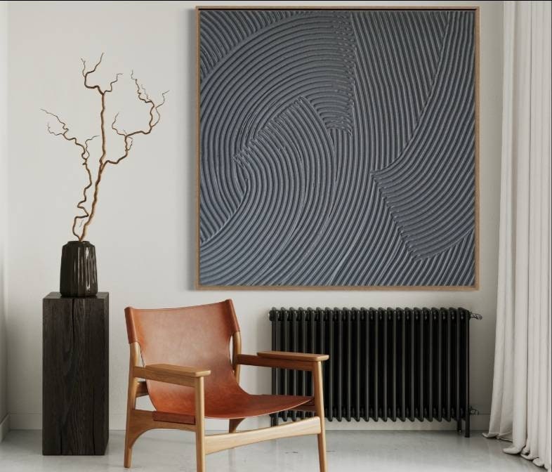 The rich matte gray finish adds depth and drama, making this artwork perfect above a sofa, bed, fireplace, or as a focal point in modern and luxury interiors.