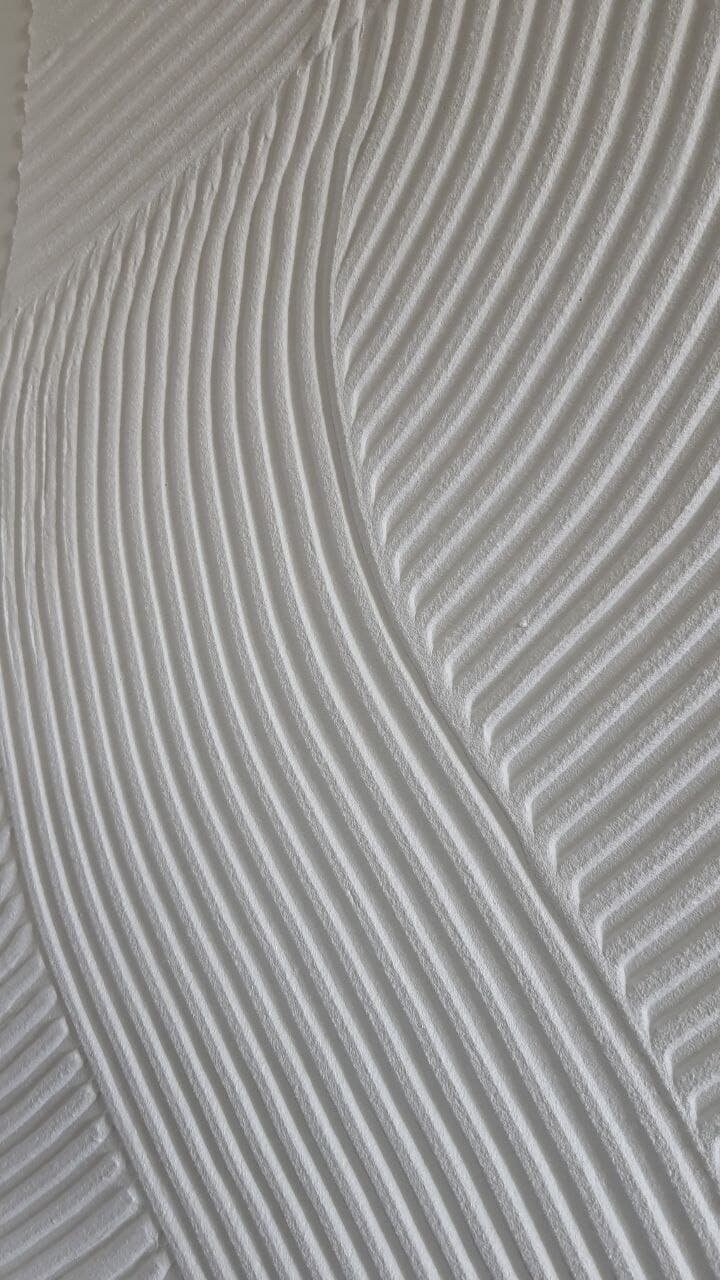This large minimalist textured painting is completely handmade using sculptural plaster techniques, creating a striking 3D relief surface that plays beautifully with light and shadow.