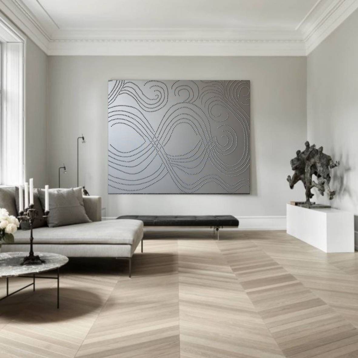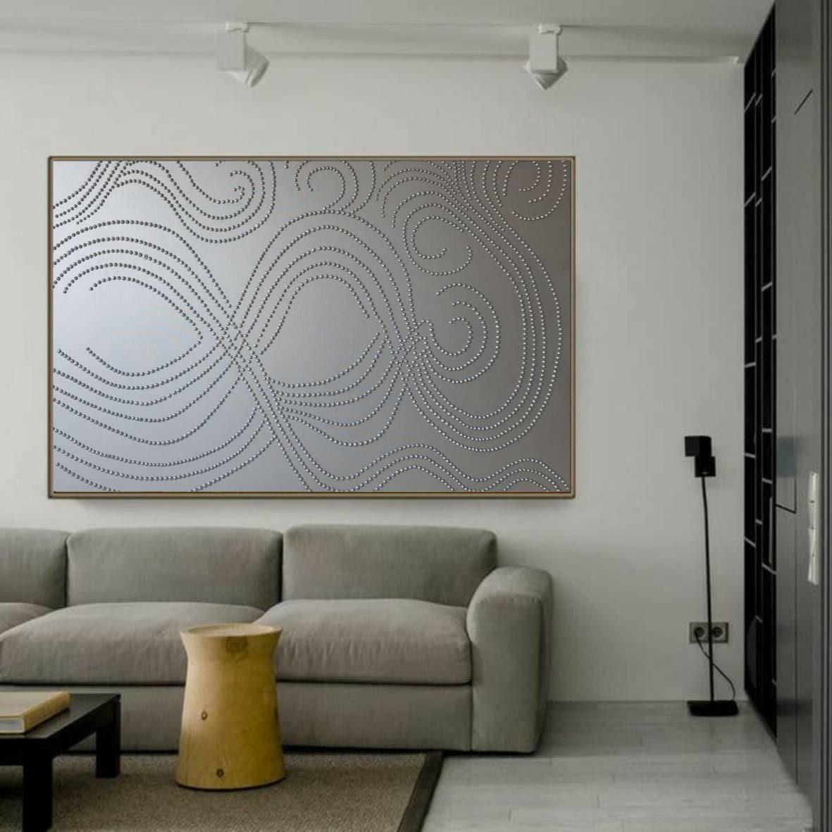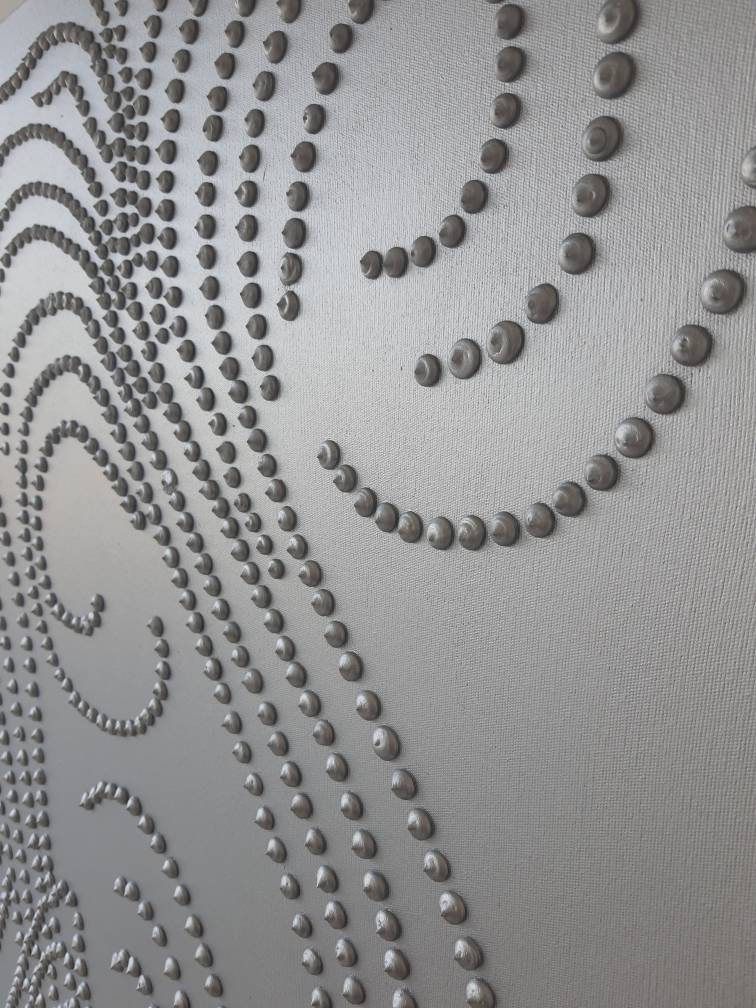 Large Silver 3D Abstract Painting: Metallic Modern Wall Art
