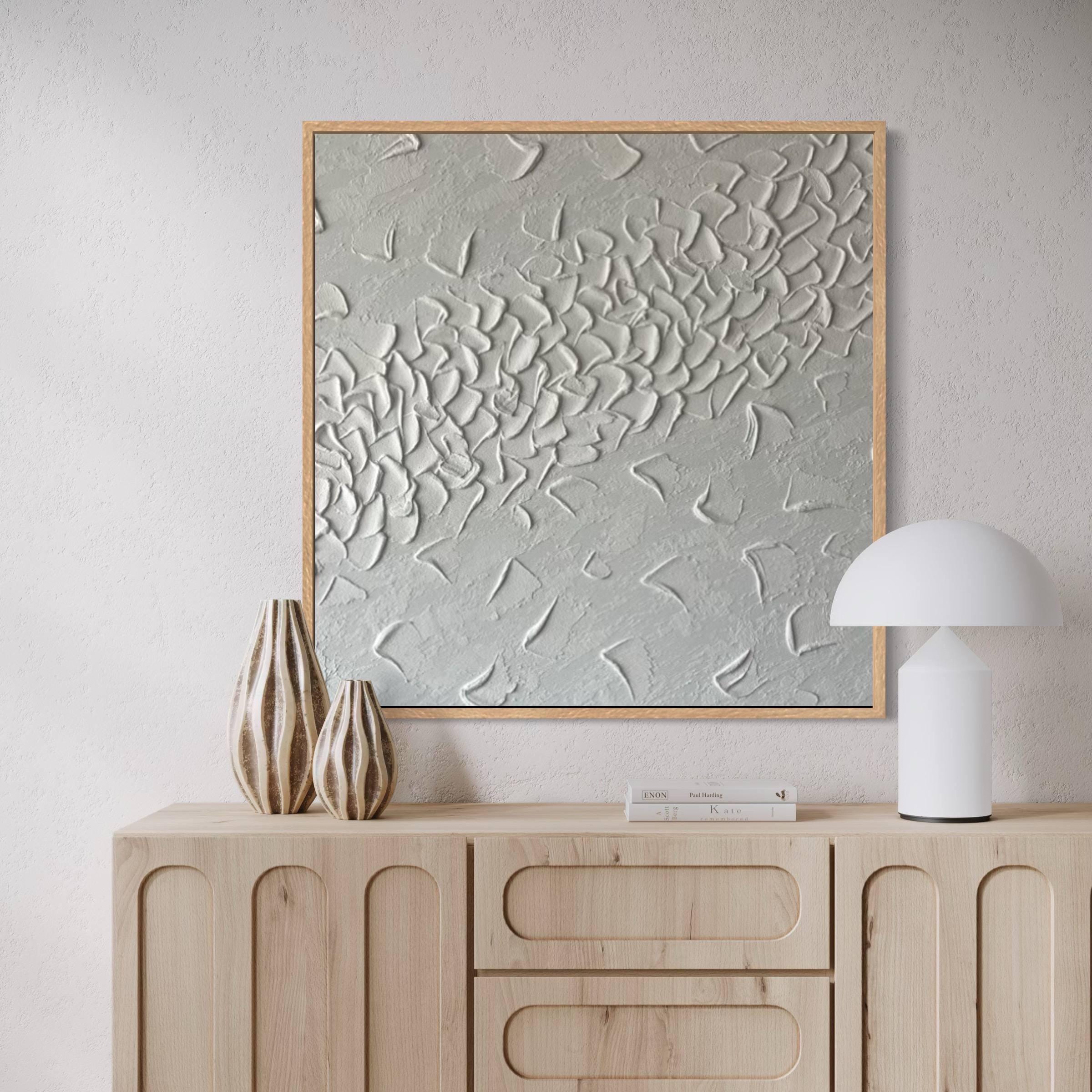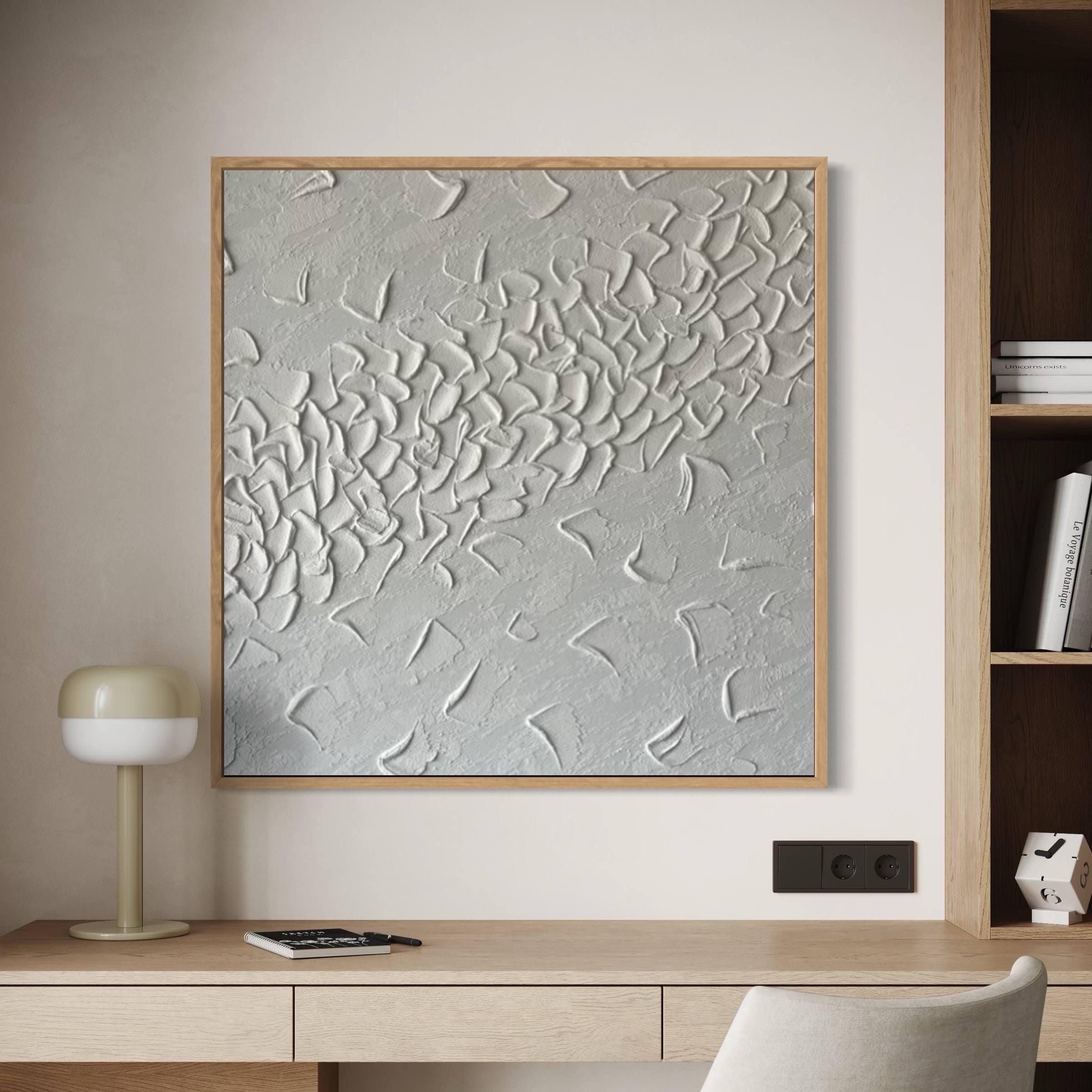 Large White Textured Wall Art Abstract Plaster 3d Painting Handmade Minimalist Canvas Modern Home Decor