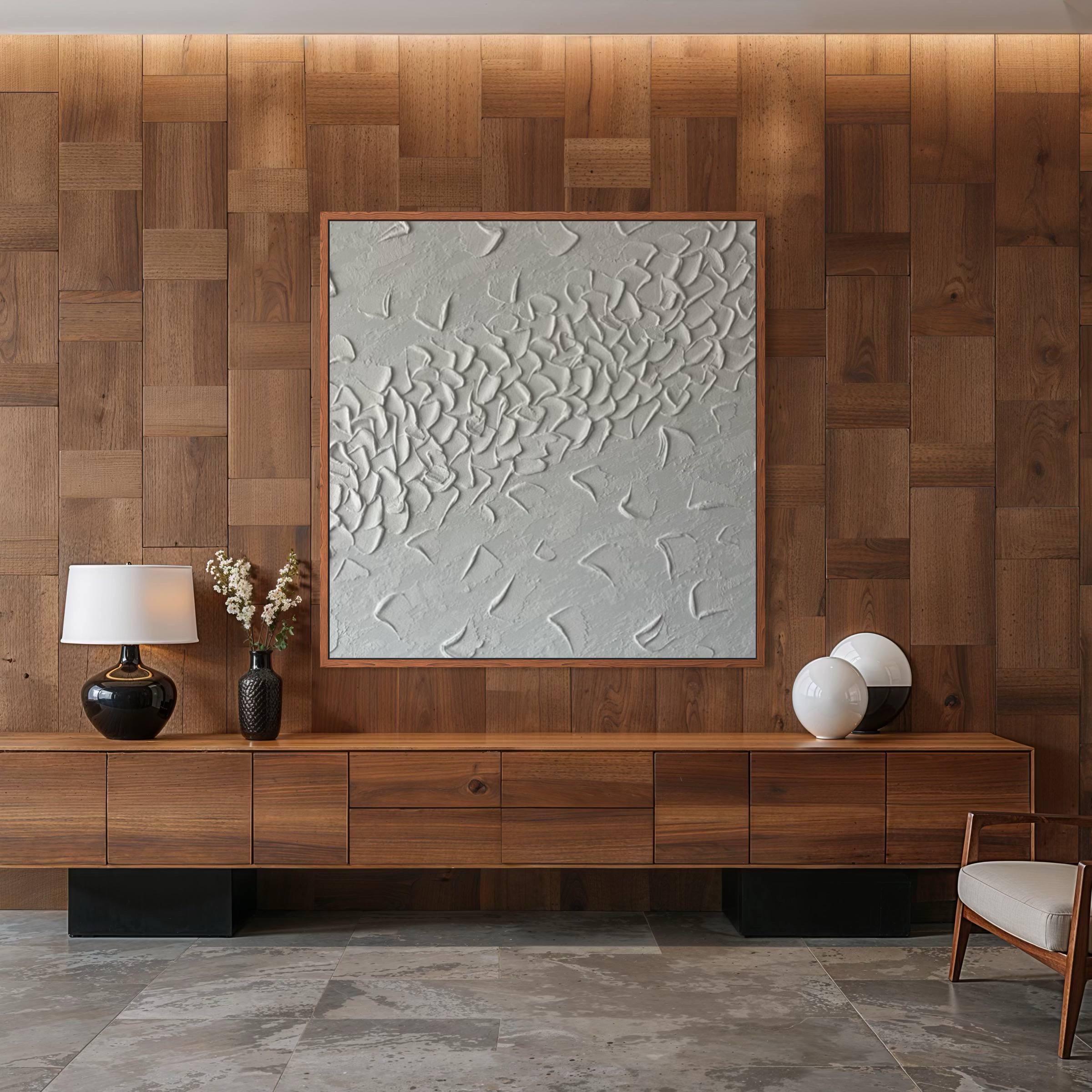 Soft white tones and flowing relief patterns bring calm, balance, and architectural elegance to modern interiors. The neutral palette blends seamlessly into contemporary, wabi-sabi, and minimalist spaces while remaining visually striking.
