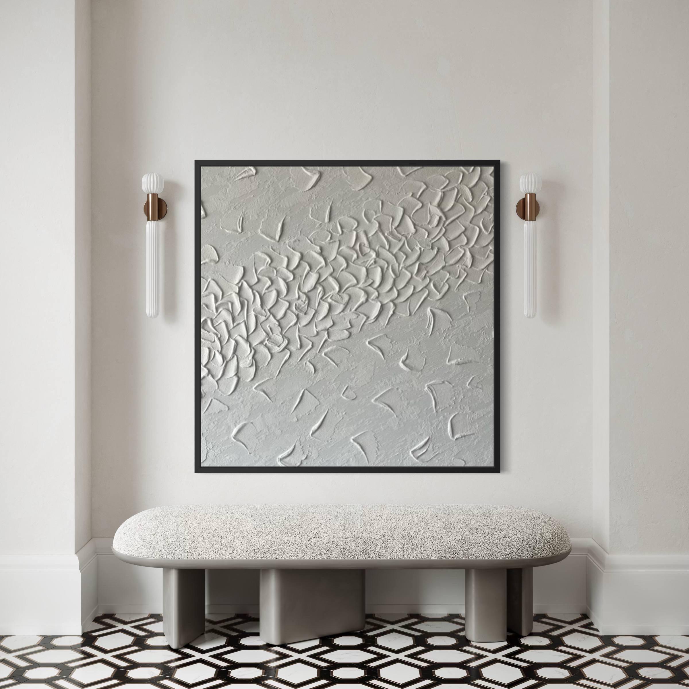 This large white textured abstract painting is a timeless minimalist statement artwork, created entirely by hand using sculptural texture techniques.