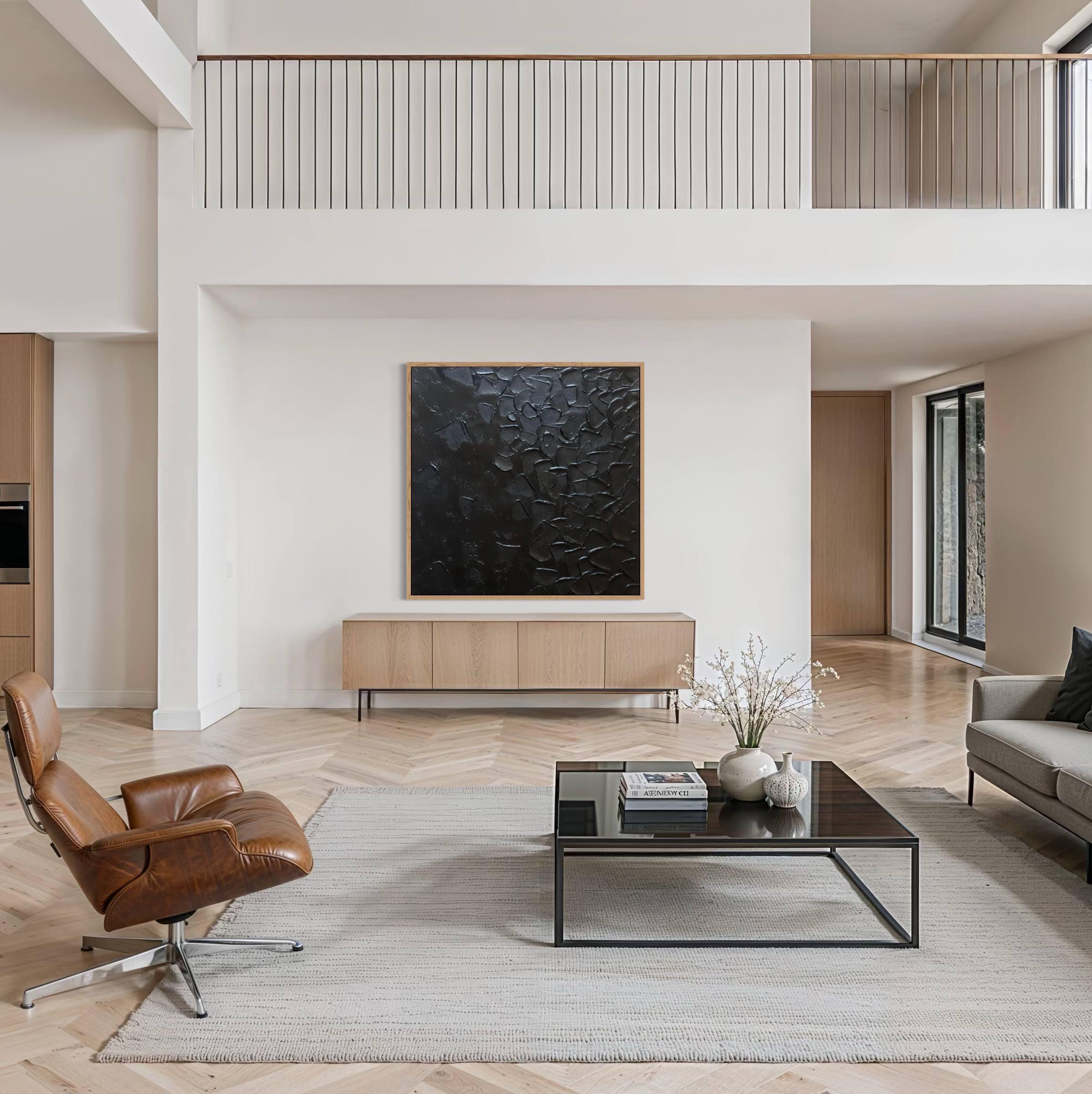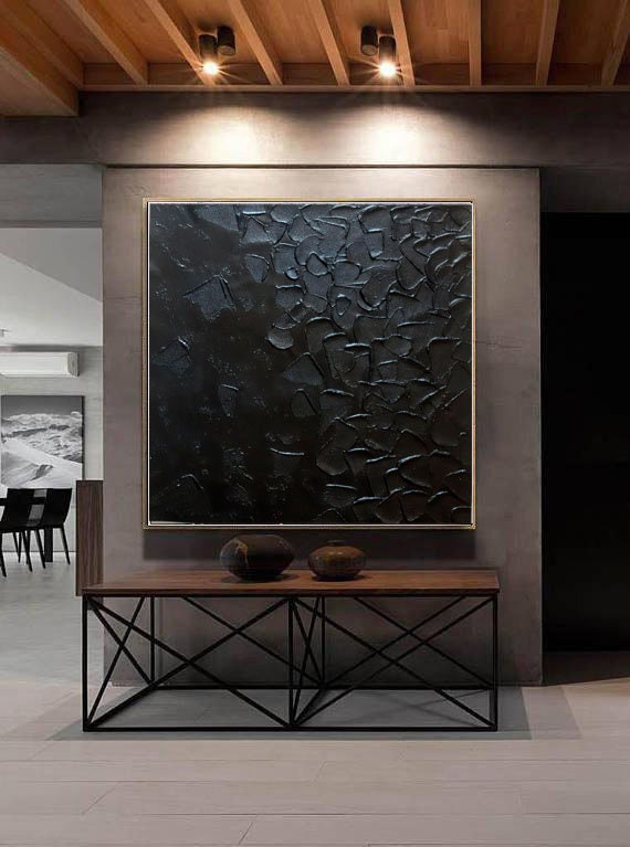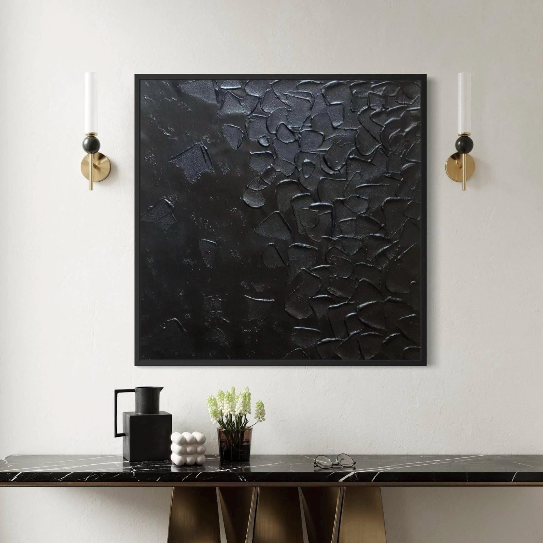 Large Black Textured Wall Art, Minimalist Abstract 3D Painting, Modern Luxury Statement Canvas, Contemporary Home Decor