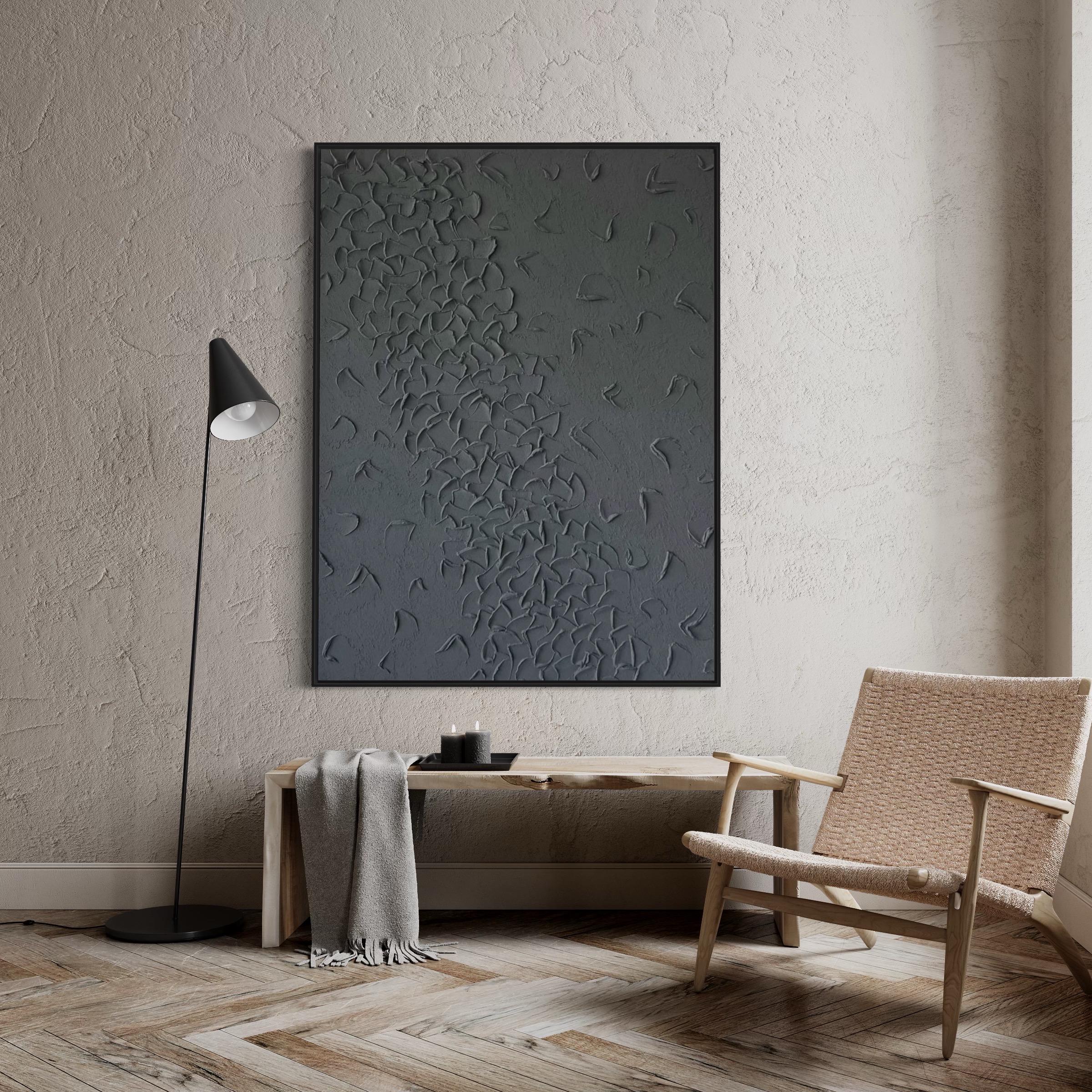Extra Large Charcoal Abstract Painting: 3D Textured Modern Wall Art