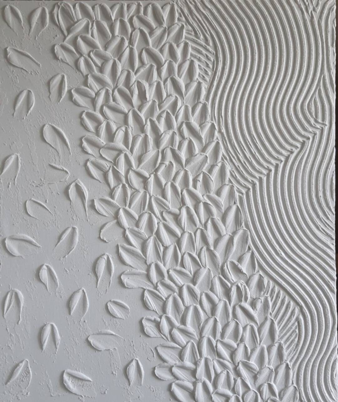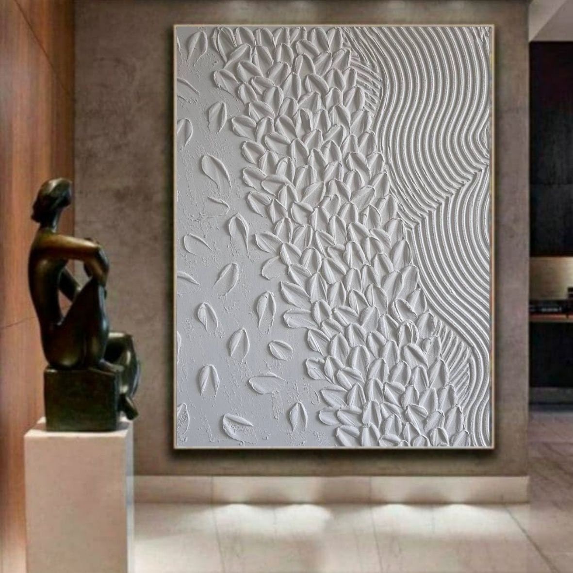 Soft white tones and flowing relief patterns bring calm, balance, and architectural elegance to modern interiors. The neutral palette blends seamlessly into contemporary, wabi-sabi, and minimalist spaces while remaining visually striking.