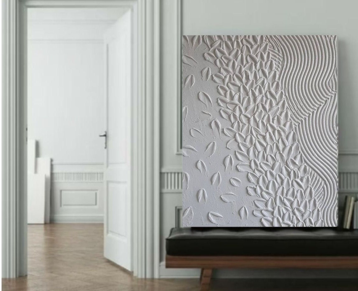 Large White Textured Abstract Wall Art, Minimalist 3D Painting, Modern Neutral Canvas, Contemporary Interior Decor