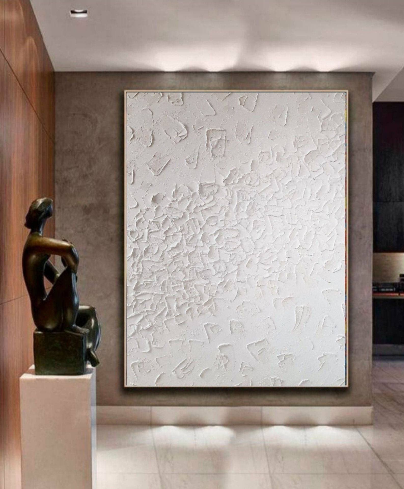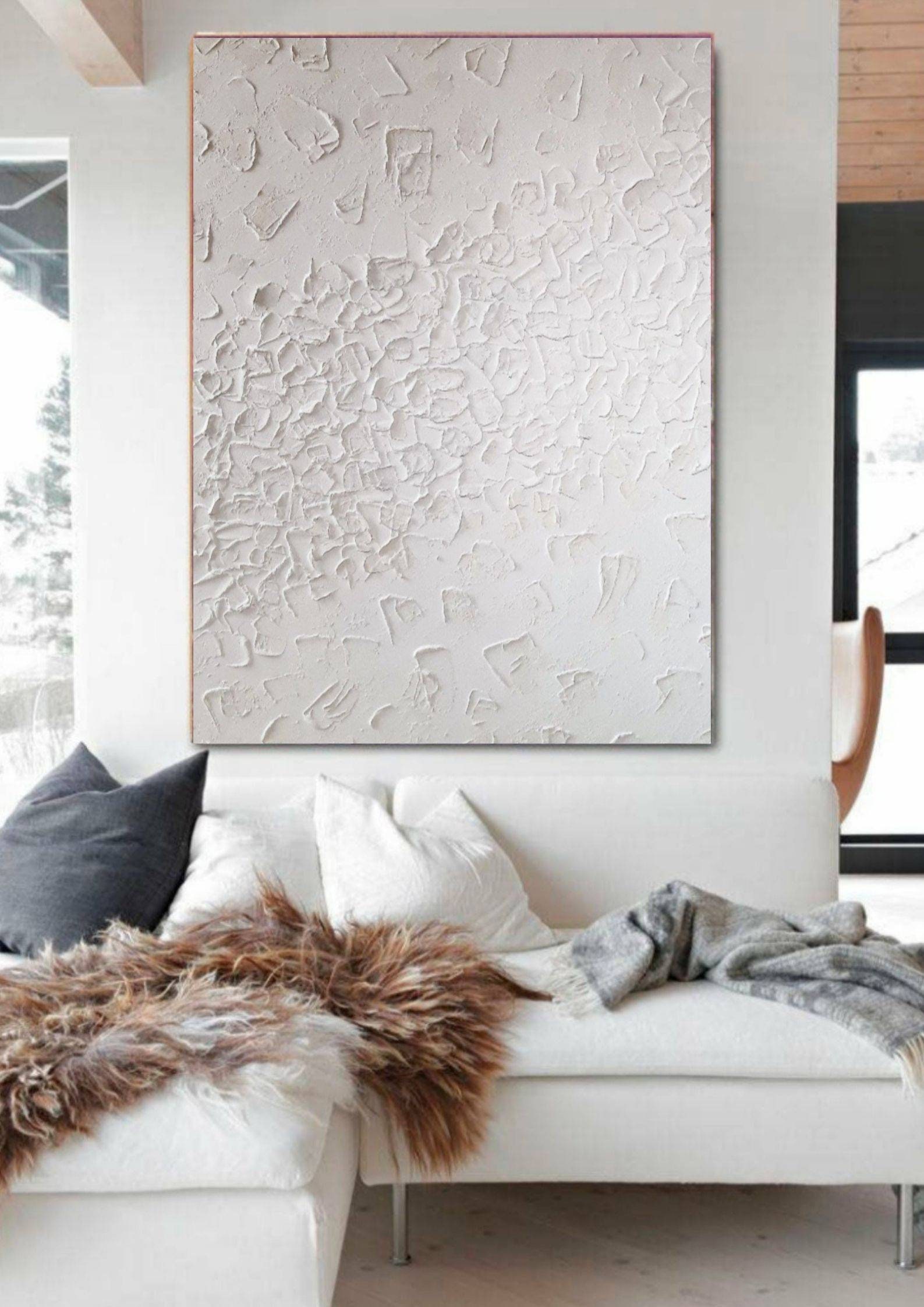 Extra Large Textured Wall Art White Abstract Plaster 3d Painting: Modern Original Canvas